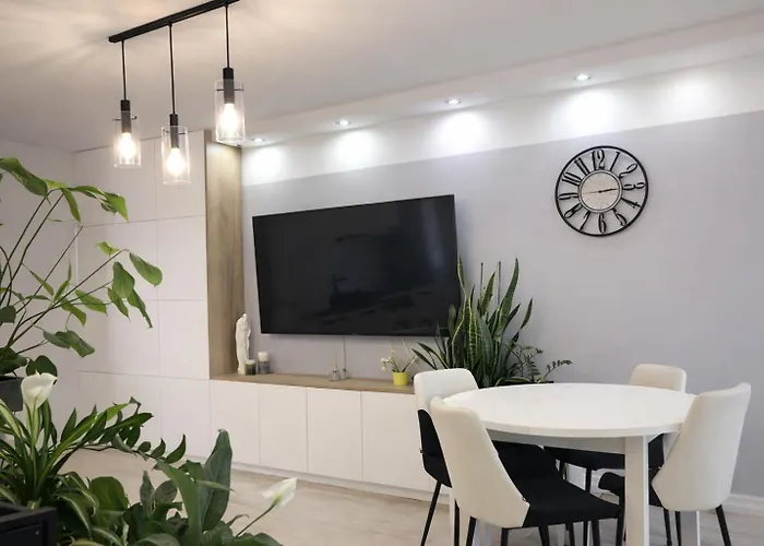 Tijdens een verblijf in Zielone Stablowice Wrocław appartement van 60 m^2 kunnen gasten zich ontspannen op een terras op 2-km afstand van het Centrum Kultury ZAMEK. Het appartement biedt moderne faciliteiten, zoals Wi-Fi en benodigdheden zoals parkeerplaatsen voor autoreizigers.
